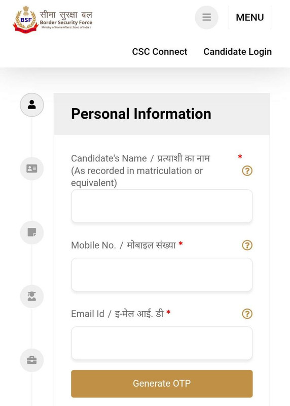 - आवेदन प्रक्रिया की शुरुआत करने के लिए उम्मीदवारों को सबसे पहले BSF की आधिकारिक वेबसाइट rectt.bsf.gov.in पर जाना होगा।